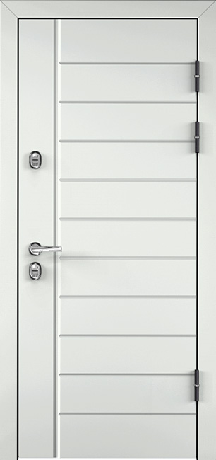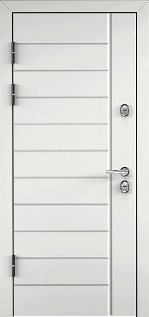 Эта белоснежная входная дверь с линиями №30 станет стильным и надежным элементом для любого интерьера. Благодаря отделке из панелей МДФ с ПВХ-покрытием, дверь выглядит элегантно и обладает высокой устойчивостью к внешним повреждениям. Внешний вид дверного полотна дополнен утонченными линиями, что придает ей современный, лаконичный вид. Прочный каркас из профильных труб 50х25 мм и лист металла толщиной 2 мм обеспечивают отличную защиту и долгий срок службы. Два контура резинового уплотнителя эффективно защищают от шума и холода, создавая комфорт в помещении. Замки Просам и Мосрентген с тремя ригелями гарантируют надежную безопасность. Дополнительно можно заказать зеркала, стеклопакеты и кованые элементы, что делает дверь универсальной для разных дизайнерских решений. Квартирная дверь входная белоснежного цвета с линиями №30 от производителя: быстрое изготовление и монтаж в Ступино, индивидуальные размеры, широкий выбор материалов и фурнитуры, официальная гарантия до 10 лет.