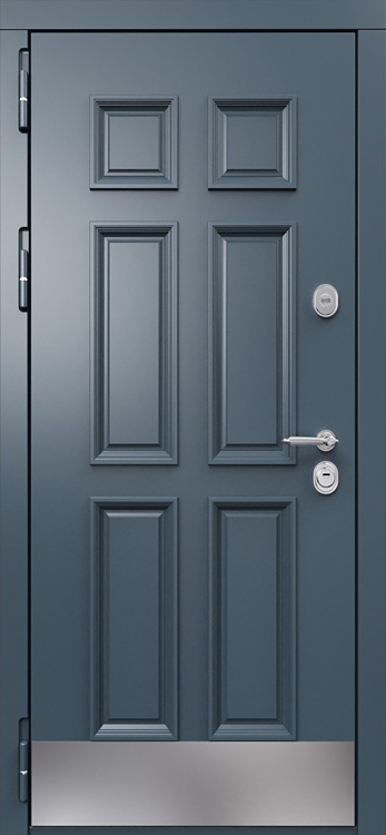 Дверь стальная МДФ эмаль №563 — это удачное сочетание надежной металлической основы и аккуратной декоративной отделки. Каркас из профильной трубы и стальной лист толщиной 2 мм обеспечивают прочность и устойчивость к взлому, а ребра жесткости повышают общий ресурс эксплуатации. Важной особенностью модели является наличие терморазрыва в коробке и полотне: конструкция эффективно препятствует промерзанию зимой, исключает появление конденсата и сохраняет тепло в помещении. Панели МДФ с ПВХ-покрытием, использованные с обеих сторон, защищены от влаги и мелких механических повреждений, благодаря чему дверь долго сохраняет привлекательный внешний вид. Два контура резинового уплотнителя дополнительно усиливают защиту от сквозняков и уличного шума. Такая дверь органично подходит для частных домов, квартир и офисов, сочетая в себе надежность стали и практичность современной отделки. Дверь стальная МДФ эмаль №563 от производителя: быстрое изготовление и монтаж в Ступино, индивидуальные размеры, широкий выбор материалов и фурнитуры, официальная гарантия до 10 лет.