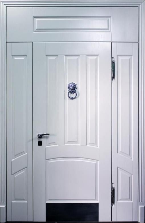 Эта входная дверь с верхней фрамугой и кнокером №5 — отличный выбор для тех, кто хочет добавить элегантности и индивидуальности своему входу. Панели МДФ с ПВХ-облицовкой не только придают двери привлекательный внешний вид, но и обеспечивают долговечность, устойчивая к механическим повреждениям и внешним воздействиям. Каркас из профильной трубы и металлическое полотно толщиной 2 мм придают прочность и надежность конструкции. Наличие блокираторов и двухконтурного уплотнителя помогает сохранять тепло и защитить от шума. Замки Просам и Мосрентген с тремя ригелями обеспечивают высокую степень безопасности. Для еще большего комфорта в дверь можно добавить стеклопакет, зеркало или кованые элементы. Входная дверь с верхней фрамугой и кнокером №5 от производителя: быстрое изготовление и монтаж в Ступино, индивидуальные размеры, широкий выбор материалов и фурнитуры, официальная гарантия до 10 лет.