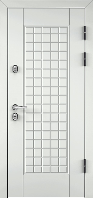 Белый цвет всегда символизирует чистоту и лёгкость, а на входной двери он ещё и подчёркивает современный вкус владельца. МДФ-плита с аккуратным вырезом «плитка» создаёт интересный декоративный эффект, благодаря которому строгая поверхность получает стильный рельеф и выглядит солидно как в частном доме, так и в офисном пространстве или городской квартире. Белая входная дверь МДФ с вырезом "плитка" в центре №532 изготовлена на основе прочного каркаса из профильной трубы с усиленными рёбрами жёсткости и металлическим листом толщиной 2 мм. Конструкция оснащена двумя замками российского производства — сувальдным Просам и цилиндровым Мосрентген, что обеспечивает надёжную защиту. При желании её можно дополнить зеркалом, коваными элементами, стеклопакетом или даже умными биометрическими замками. Такая дверь не только надёжна, но и способна стать выразительной деталью экстерьера или интерьера. Белая входная дверь МДФ с вырезом "плитка" в центре №532 от производителя: быстрое изготовление и монтаж в Ступино, индивидуальные размеры, широкий выбор материалов и фурнитуры, официальная гарантия до 10 лет.