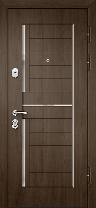 Глубокий оттенок венге всегда выглядит благородно и современно, а декоративная панель придаёт полотну завершённый стильный образ. Дверь МДФ цвета венге с внешней декоративной панелью №538 подходит для установки как в частных домах, так и в квартирах или офисах, где ценят сочетание надёжности и эстетики. Плиты МДФ отличаются прочностью, стойкостью к мелким механическим повреждениям и долго сохраняют первоначальный вид без потери насыщенности цвета. Конструкция выполнена на основе стального каркаса с листом металла толщиной 2 мм и рёбрами жёсткости, что обеспечивает высокий уровень прочности. Два контура уплотнения повышают комфорт эксплуатации, защищая от сквозняков. Дополнительно дверь можно оснастить шумо- и теплоизоляцией, зеркалом, стеклопакетом или коваными элементами, сделав её не только практичной, но и индивидуальной деталью интерьера. Дверь МДФ цвета венге с внешней декоративной панелью №538 от производителя: быстрое изготовление и монтаж в Ступино, индивидуальные размеры, широкий выбор материалов и фурнитуры, официальная гарантия до 10 лет.