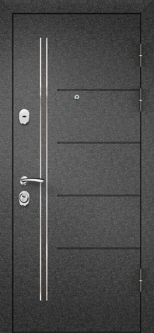 Порошковая входная дверь №65 объединяет прочность металла и практичную отделку, делая её универсальным выбором для квартиры, офиса или подъезда. Каркас и полотно собраны из профильной трубы, усиленной ребрами жесткости, а стальной лист толщиной 2 мм придает конструкции дополнительную устойчивость к нагрузкам. Снаружи нанесено молотковое напыление — покрытие, стойкое к царапинам и атмосферным воздействиям, благодаря чему дверь долго сохраняет аккуратный внешний вид. Внутренняя сторона оформлена ламинированными панелями, создающими ощущение тепла и комфорта. Два резиновых контура уплотнения помогают отсечь сквозняки и пыль, при необходимости можно добавить шумо- и теплоизоляцию. Модель №65 сочетает надежность и лаконичность, а её внешний вид гармонично впишется как в жилое пространство, так и в деловую среду. Порошковая входная дверь №65 от производителя: быстрое изготовление и монтаж в Ступино, индивидуальные размеры, широкий выбор материалов и фурнитуры, официальная гарантия до 10 лет.