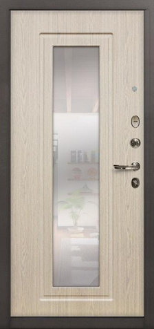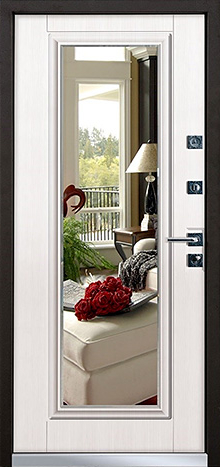 Дверь металлическая с зеркалом №69 создана для тех, кто ищет баланс между надежностью и удобством. Она уверенно справляется с ролью защитного барьера для квартиры, офиса или частного дома, при этом оставаясь практичным элементом интерьера. Снаружи поверхность покрыта молотковым напылением, устойчивым к влаге и механическим повреждениям, что делает дверь долговечной даже при интенсивной эксплуатации. Внутри используется плита МДФ, добавляющая теплоты и визуальной гармонии. Зеркало на внутренней стороне решает вопрос удобства и экономии пространства, позволяя превратить прихожую в более функциональное место. Конструкция собрана на основе профильных труб и усилена стальным листом толщиной 2 мм, а два контура уплотнения надежно защищают от шума и сквозняков. Встроенный терморазрыв в полотне и коробке исключает промерзание, сохраняя комфортную температуру в помещении даже зимой. Дверь металлическая с зеркалом №69 от производителя: быстрое изготовление и монтаж в Ступино, индивидуальные размеры, широкий выбор материалов и фурнитуры, официальная гарантия до 10 лет.