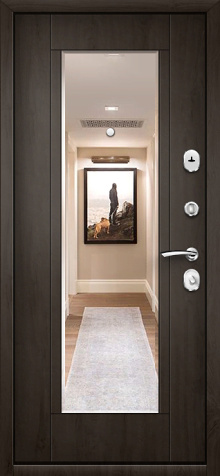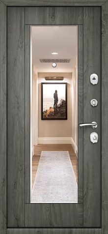 Эта модель создана для тех, кто ценит надежность металла и продуманную эстетику. Снаружи дверь защищена порошковой окраской, стойкой к атмосферным воздействиям и царапинам, что делает её долговечной даже при установке на улицу. Внутри используется МДФ с пленкой ПВХ, благодаря чему полотно выглядит аккуратно и легко вписывается в интерьер квартиры или офиса. Особое внимание заслуживает железная дверь с зеркалом №70: встроенное зеркало делает пространство прихожей визуально шире и добавляет практичности в повседневное использование. Конструкция выполнена из профильных труб и стали толщиной 2 мм, усиленных ребрами жесткости. Два контура уплотнителей надежно защищают от сквозняков, а терморазрыв в коробке и полотне предотвращает промерзание зимой. Дверь комплектуется замками российского производства с ригельной системой, при желании можно установить замки премиальных марок или смарт-модели, а также дополнить изделие видеодомофоном или декоративными элементами. Железная дверь с зеркалом №70 от производителя: быстрое изготовление и монтаж в Ступино, индивидуальные размеры, широкий выбор материалов и фурнитуры, официальная гарантия до 10 лет.