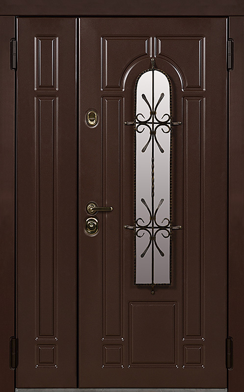 Эта металлическая двухстворчатая дверь с арочным стеклопакетом №15 представляет собой идеальный баланс между эстетикой и прочностью. Арочное стекло добавляет в её дизайн утончённость, а ковка в декоре придаёт изысканный, но в то же время крепкий и надёжный вид. Плита МДФ, используемая как для внешней, так и для внутренней отделки, не только сохраняет прекрасный внешний вид, но и устойчива к механическим повреждениям. Металлическая двухстворчатая дверь с арочным стеклопакетом №15 от производителя: быстрое изготовление и монтаж в Ступино, индивидуальные размеры, широкий выбор материалов и фурнитуры, официальная гарантия до 10 лет.