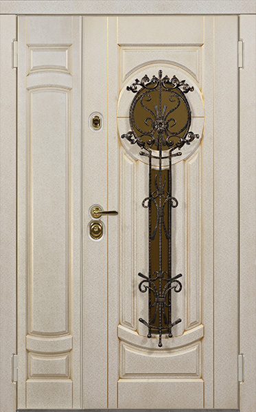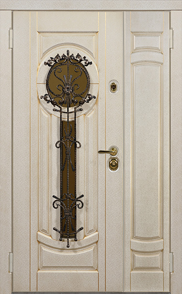 Двухстворчатая парадная дверь с ковкой и стеклом белая №30 — это сочетание красоты и надёжности. Конструкция из профильной трубы 50х25 мм и металлического листа толщиной 2 мм обеспечивает долговечность и стойкость к внешним воздействиям. Элементы ковки придают двери изысканный вид, а стеклопакет позволяет создать атмосферу лёгкости и прозрачности. Внешняя и внутренняя отделка выполнены из плиты МДФ, что делает дверь не только привлекательной, но и устойчивой к механическим повреждениям. Для дополнительной герметичности используются уплотнители с двумя контурами, а блокираторы обеспечат безопасность. Вариативность размеров и возможность добавления дополнительных опций, таких как шумо- и теплоизоляция, делают эту модель универсальной для установки в любом интерьере. Двухстворчатая парадная дверь с ковкой и стеклом белая №30 от производителя: быстрое изготовление и монтаж в Ступино, индивидуальные размеры, широкий выбор материалов и фурнитуры, официальная гарантия до 10 лет.