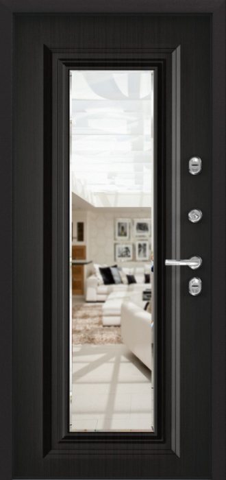 Эта металлическая входная дверь станет отличным решением для частного дома, квартиры или офиса. Заводская металлическая дверь стандартного размера со склада №18 обладает прочной конструкцией с профилированной трубой 50х25 мм и металлическим листом толщиной 2 мм, что обеспечивает надежность и долговечность. Внешняя отделка с порошковым напылением устойчива к воздействию внешней среды и механическим повреждениям. Внутреннее покрытие из плиты МДФ добавляет двери стильный и современный вид. Дополнительным акцентом служит зеркало, которое можно использовать как элемент декора. Дверь оснащена двумя замками, сувальдным и цилиндровым, каждый с тремя ригелями для надежной защиты. Вариативность в отделке и замках, а также возможность установить видеодомофон или умный замок делают эту модель универсальной и адаптируемой под любые требования. Заводская металлическая дверь стандартного размера со склада №18 от производителя: быстрое изготовление и монтаж в Ступино, индивидуальные размеры, широкий выбор материалов и фурнитуры, официальная гарантия до 10 лет.