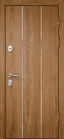Современная входная металлическая дверь для частного дома №25 сочетает в себе стиль и надежность, что делает ее отличным выбором для частных домов, квартир и офисов. Благодаря прочной конструкции с каркасом из профильной трубы 50х25 мм и металлическим полотном толщиной 2 мм, она обеспечивает долгосрочную эксплуатацию и высокую защиту. Внешняя и внутренняя отделка выполнены из МДФ, что придает двери элегантный и современный вид, устойчивый к механическим повреждениям и воздействию внешней среды. Ребра жесткости из профильных труб 40х25 мм усиливают конструкцию, а два контура резинового уплотнителя эффективно защищают от проникновения холода и шума. В этой модели предусмотрены два замка (сувальдный и цилиндровый), что повышает уровень безопасности. Дополнительные опции, такие как установка зеркала, стеклопакета или кованых элементов, позволяют адаптировать дверь под любые интерьерные решения. Современная входная металлическая дверь для частного дома №25 от производителя: быстрое изготовление и монтаж в Ступино, индивидуальные размеры, широкий выбор материалов и фурнитуры, официальная гарантия до 10 лет.