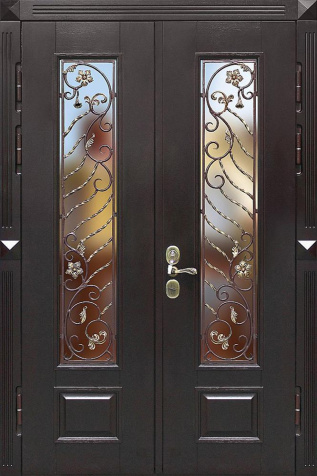 Филенчатая дверь для загородного дома с терморазрывом №32 — идеальный выбор для тех, кто ценит стиль и практичность. Элегантная отделка из натурального дерева как снаружи, так и внутри добавляет природной теплоты и уюта в ваш частный дом или коттедж. Конструкция двери с прочной профильной трубой и металлическим листом толщиной 2 мм обеспечивает отличную износостойкость и долговечность. Благодаря терморазрыву, как в коробке, так и в полотне, дверь будет защищена от воздействия температуры и влаги, что способствует сохранению её первоначального вида и надежности. Внутреннее уплотнение с двумя контурами и качественные замки обеспечивают безопасность и комфорт, сохраняя тепло внутри вашего дома. Филенчатая дверь для загородного дома с терморазрывом №32 от производителя: быстрое изготовление и монтаж в Ступино, индивидуальные размеры, широкий выбор материалов и фурнитуры, официальная гарантия до 10 лет.