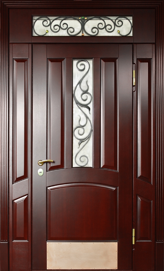 Красивая шпонированная дверь с надежной фурнитурой и ковкой "лоза" №33 идеально дополнит интерьер вашего частного дома или коттеджа. Внешняя и внутренняя отделка выполнены из натурального дерева, что придает двери элегантность и стиль. Профильная труба 50х25 мм используется для каркаса и полотна, а лист металла толщиной 2 мм и ребра жесткости из профильных труб 40х25 мм обеспечивают прочность и долговечность. Несмотря на отсутствие терморазрыва, дверь гарантирует надежную защиту и теплоизоляцию благодаря двум контурам уплотнения. Элементы ковки "лоза" придают двери особое очарование, сочетая практичность с эстетикой. Эта дверь — идеальный выбор для тех, кто ценит стиль, качество и безопасность. Красивая шпонированная дверь с надежной фурнитурой и ковкой "лоза" №33 от производителя: быстрое изготовление и монтаж в Ступино, индивидуальные размеры, широкий выбор материалов и фурнитуры, официальная гарантия до 10 лет.