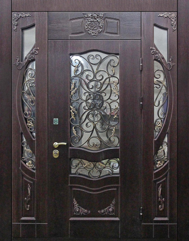 Кованая дверь под старину для частного дома №38 — это идеальное решение для тех, кто ценит уникальный стиль и надёжность. Изготовленная из массива дуба как снаружи, так и внутри, она привнесёт атмосферу уюта и элегантности в ваш дом или коттедж. Эта дверь с элементами ковки, выполненная на основе прочной профильной трубы, представляет собой сочетание классического дизайна и современной функциональности. Она прекрасно подходит для установки в парадной зоне, создавая неповторимый акцент в интерьере. С механической точки зрения дверь оснащена двумя замками Cisa с четырьмя и пятью ригелями, обеспечивающими надёжную защиту. Стойкость к внешним воздействиям и долговечность отделки гарантируют сохранение первоначального вида в течение долгого времени. Кованая дверь под старину для частного дома №38 от производителя: быстрое изготовление и монтаж в Ступино, индивидуальные размеры, широкий выбор материалов и фурнитуры, официальная гарантия до 10 лет.