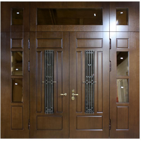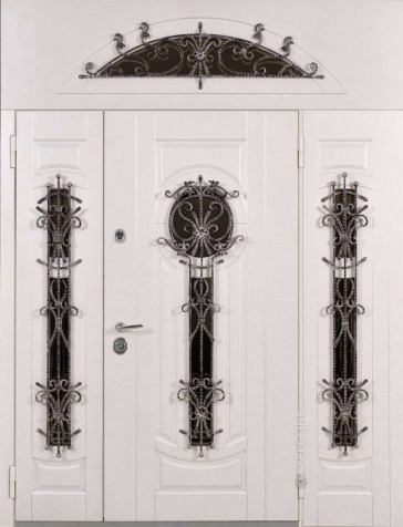 Входная дверь с кованой ручкой и фрамугой №6