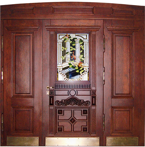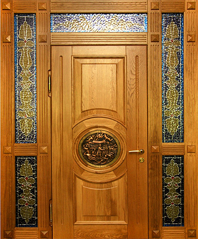 Дверь входная двухстворчатая с витражным стеклом №47