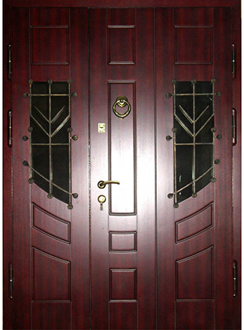 Двустворчатая входная дверь со стеклом №39