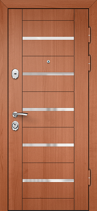Современная входная дверь с цилиндровым замком №21 сочетает строгую надежность металлической конструкции и аккуратный внешний вид. Каркас из профильной трубы и лист стали толщиной 2 мм образуют прочный щит, усиленный ребрами жесткости и блокираторами. Накладки из МДФ придают полотну более «домашний» облик: материал не только эстетичен, но и практичен — ПВХ-покрытие стойко переносит небольшие повреждения и сохраняет первозданный вид долгие годы. Такая дверь подходит для квартиры, офиса или частного дома, где важно совместить защиту и стиль. Цилиндровый замок обеспечивает удобное и надежное закрывание, а два контура резинового уплотнителя защищают от сквозняков и лишнего шума. При желании возможно дополнить конструкцию тепло- и шумоизоляцией или установить замки другого типа, включая современные электронные системы. Современная входная дверь с цилиндровым замком №21 от производителя: быстрое изготовление и монтаж в Ступино, индивидуальные размеры, широкий выбор материалов и фурнитуры, официальная гарантия до 10 лет.